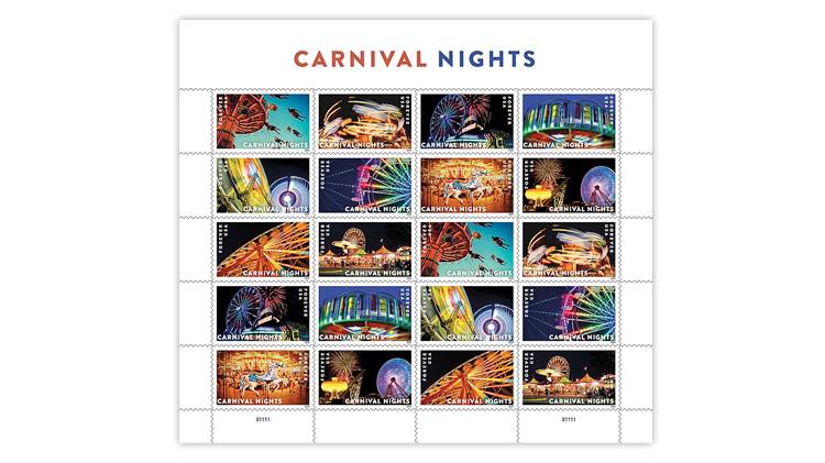 Flashy colors and dizzying rides sparkle on 10 Carnival Nights stamps June 6