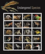 Under the Endangered Species Act, which marks its 50th anniversary in 2023, more than 1,600 imperiled plant and animal species are safeguarded to increase their chances of survival. With this pane of 20 Stamps, the U.S. Postal Service? presents a photographic portfolio of 20 representative endangered animal species.