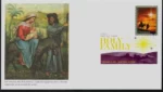 Art director William Gicker, designer Greg Breeding, and artist Nancy Stahl created the stamp’s artwork. It features Joseph leading a donkey carrying Mary and baby Jesus under a shining star.